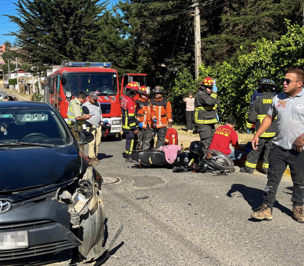 Un motociclista quedó con lesiones de carácter reservado la mañana de este martes tras colisionar con un vehículo menor en la intersección de Guillermo Greene con Bernardino Iturriaga, en Pichilemu.
